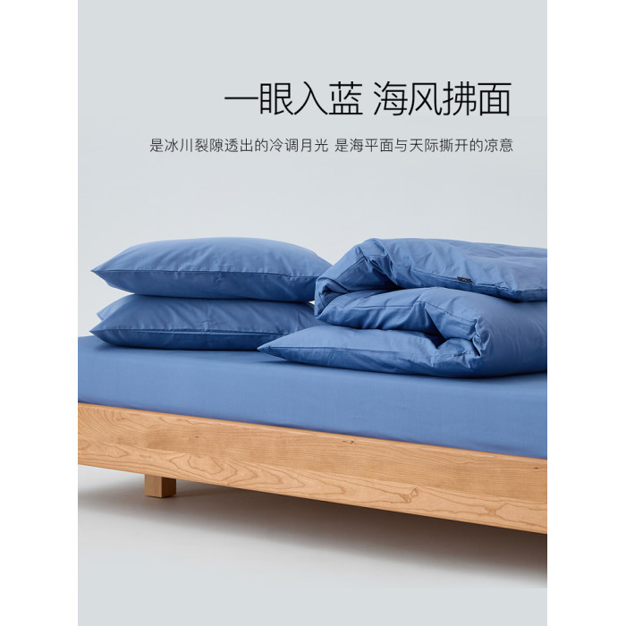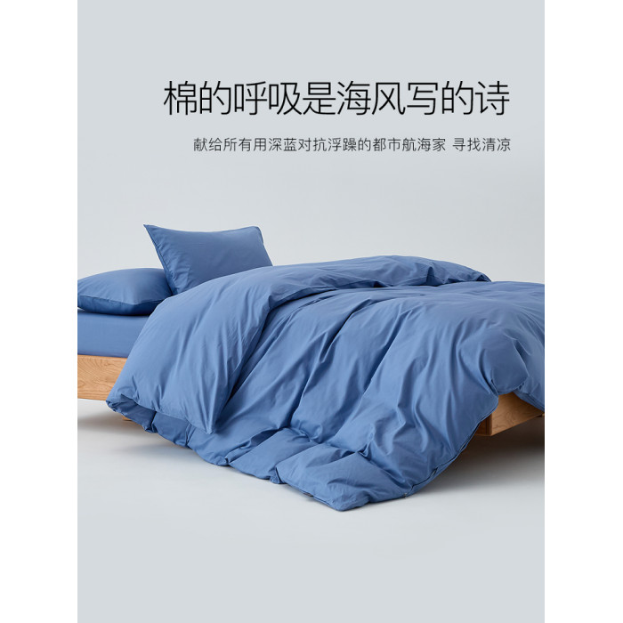 A類簡約藍色全棉純棉被套四件套150x200x230單人宿舍被罩男生夏季