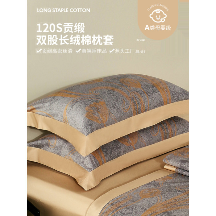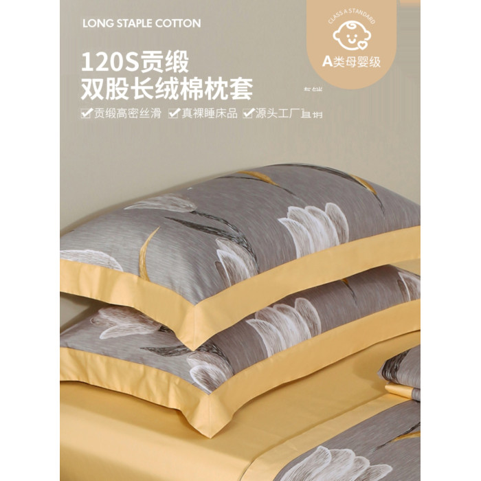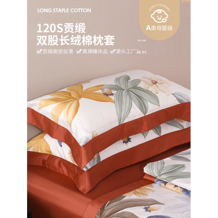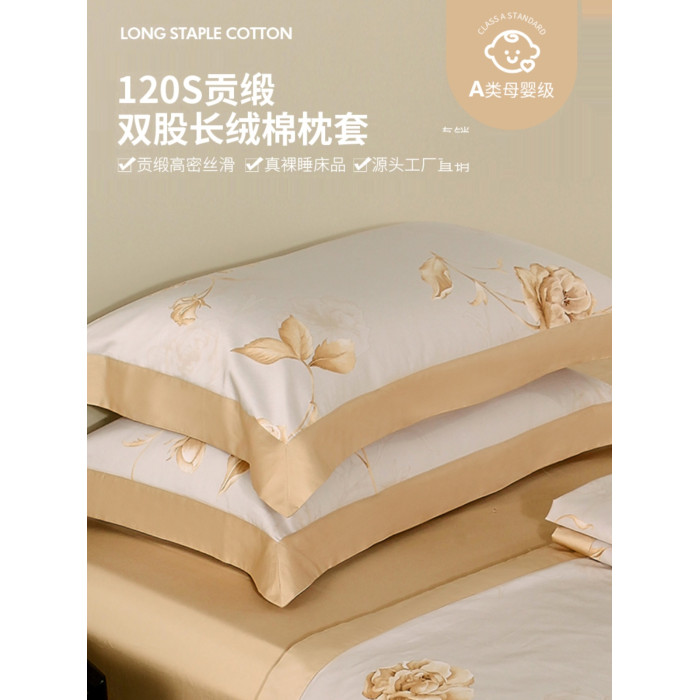 貢緞純棉枕套印花貢緞純棉枕套單件120支母嬰級A類花卉親膚通用