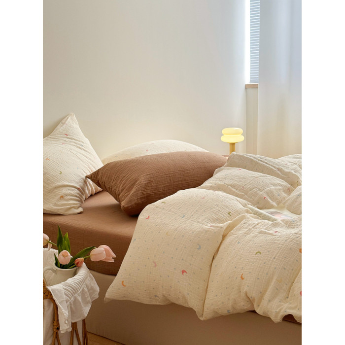 ins風復古A類裸睡雙層皺皺紗全棉純棉被套單件學生宿舍床品四件套