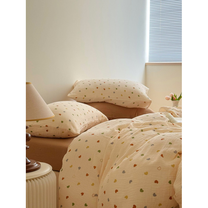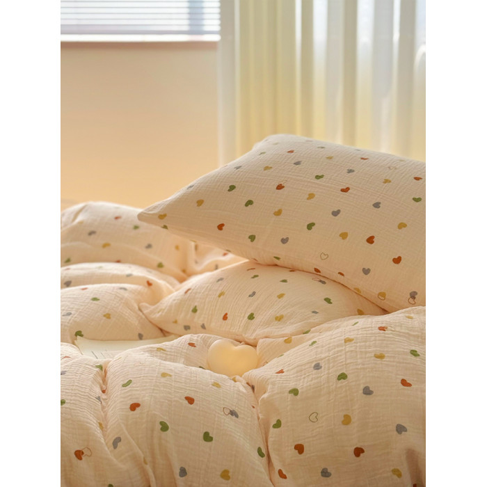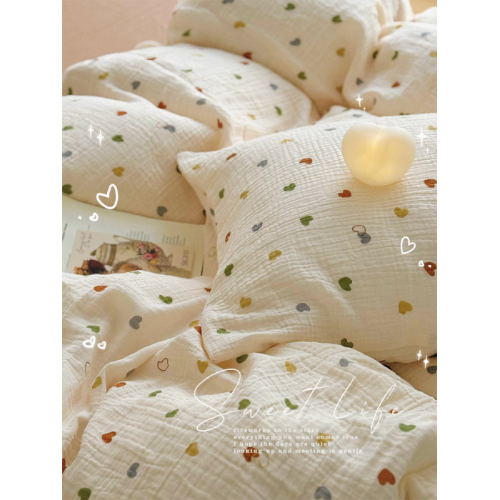 ins風軟糯愛心雙層皺皺紗全棉純棉被套1.8米床上學生宿舍被罩單件