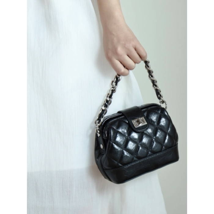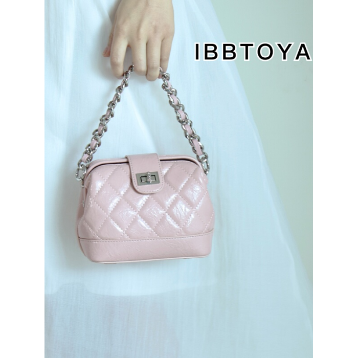 IBBTOYA新款菱格鏈條小方包質感小香風手拎包精緻百搭盒子包斜背