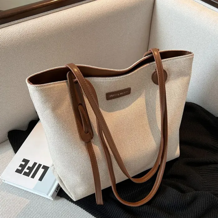 休閒大容量包包女包2025新款百搭帆布包通勤上課單肩包簡約托特包