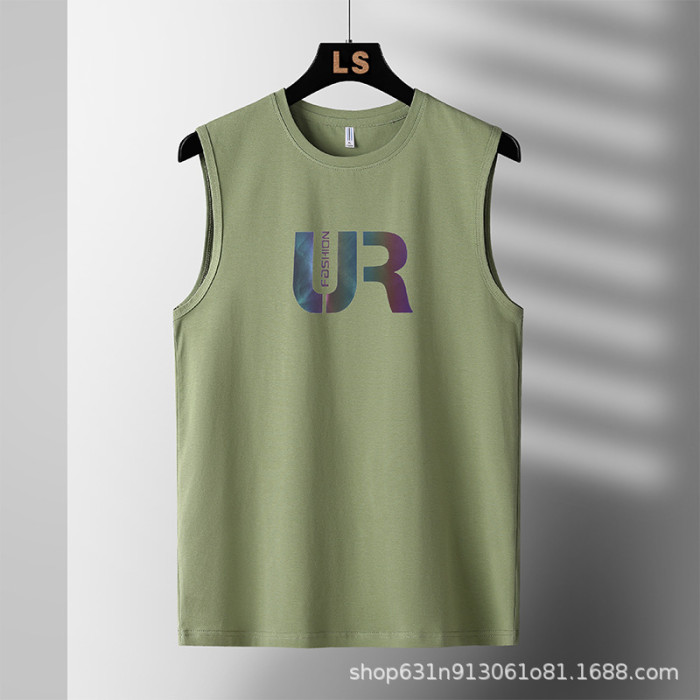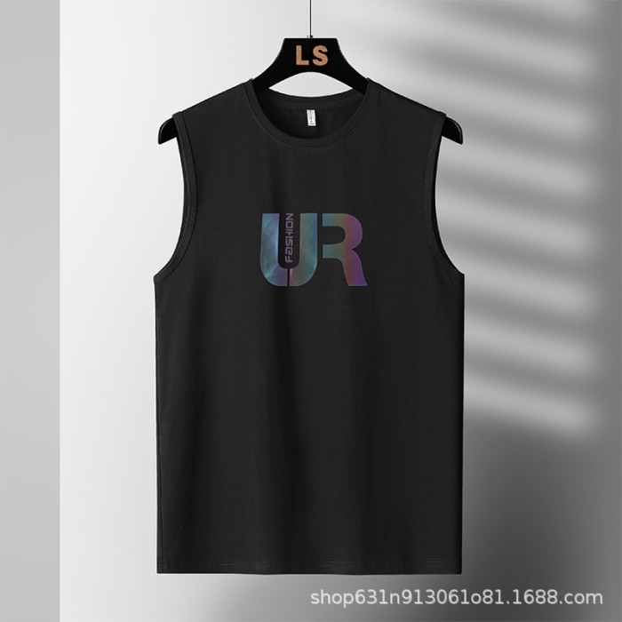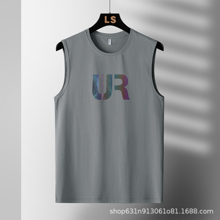 潮牌T夏季ins背心男潮流寬印花印花運動馬甲跨欄健身坎肩無袖t恤