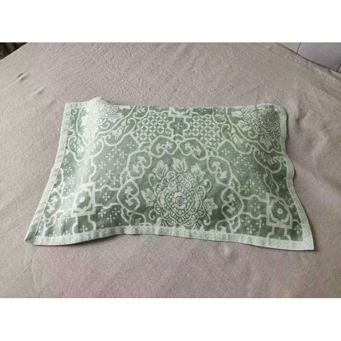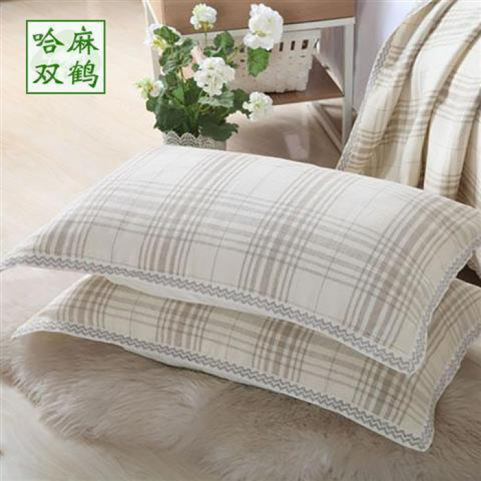 哈麻雙鶴百分百純亞麻枕巾枕套一對兩條麻色綠色