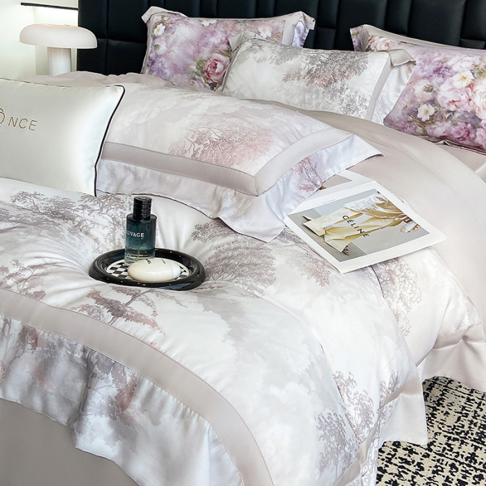 夏季A類蘭精萊賽爾天絲四件套夏天涼感冰絲被套1.8床笠款床上用品