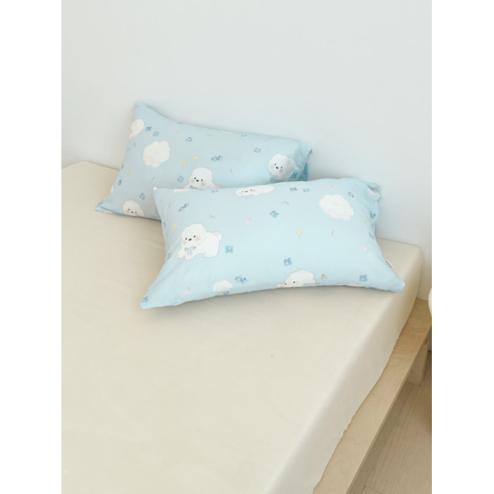 綿綿雲小白 治瘉原創小狗可愛藍雙層紗枕套全棉奶油風可愛枕芯罩