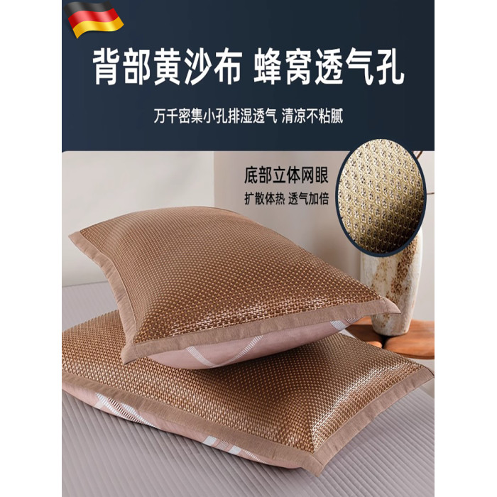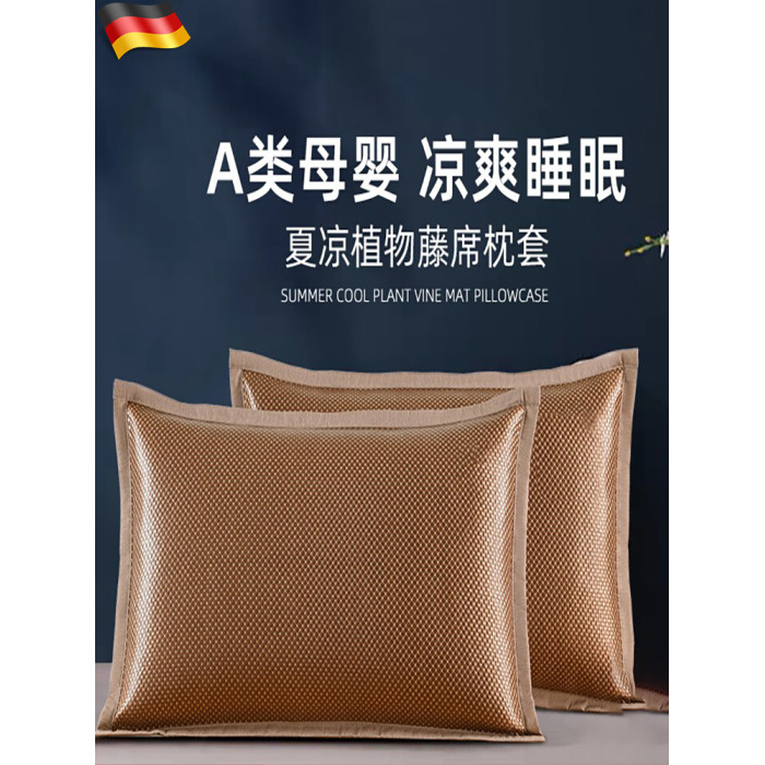 德國枕頭冰藤枕套枕芯套一對裝冰絲枕頭套夏天涼爽透氣竹枕蓆枕皮