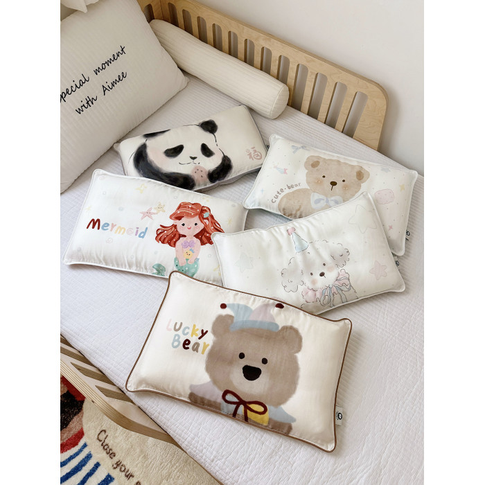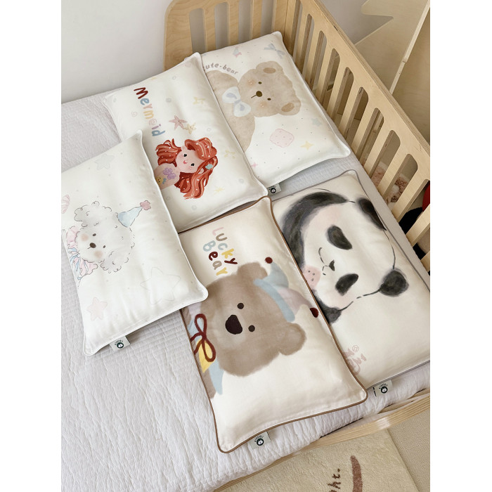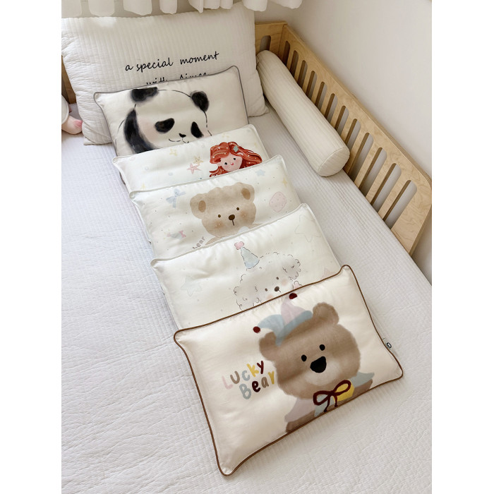 全棉A類雙層紗布枕套兒童枕頭套寶寶吸汗透氣棉紗幼兒園枕皮30*50