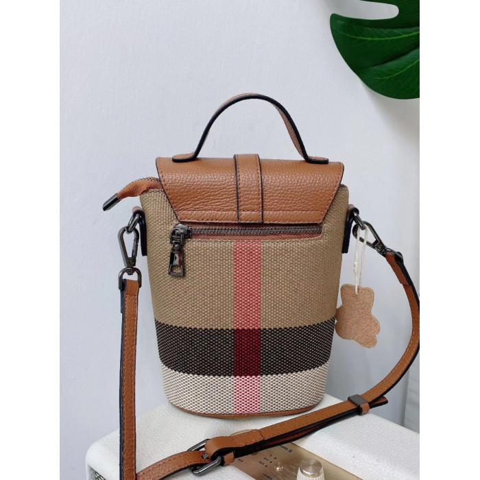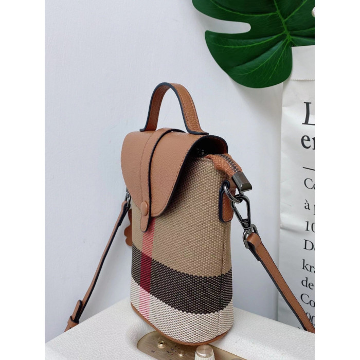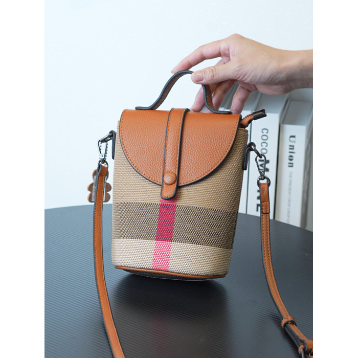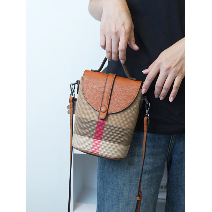小包2025夏季潮女包新款頭層牛皮格紋斜後背包時尚百搭單肩包水桶包