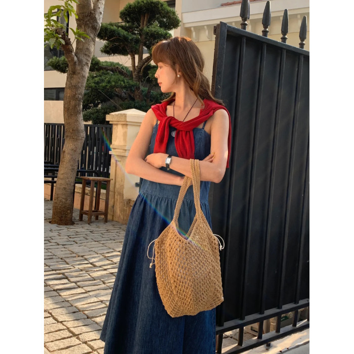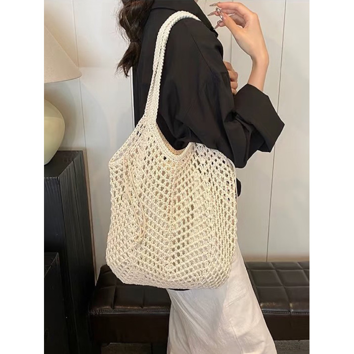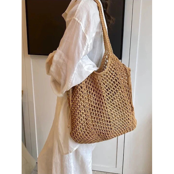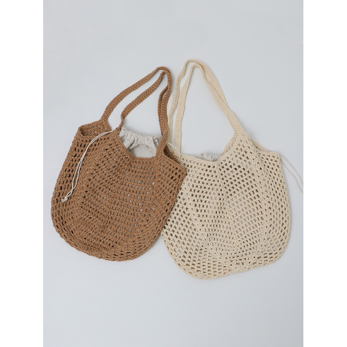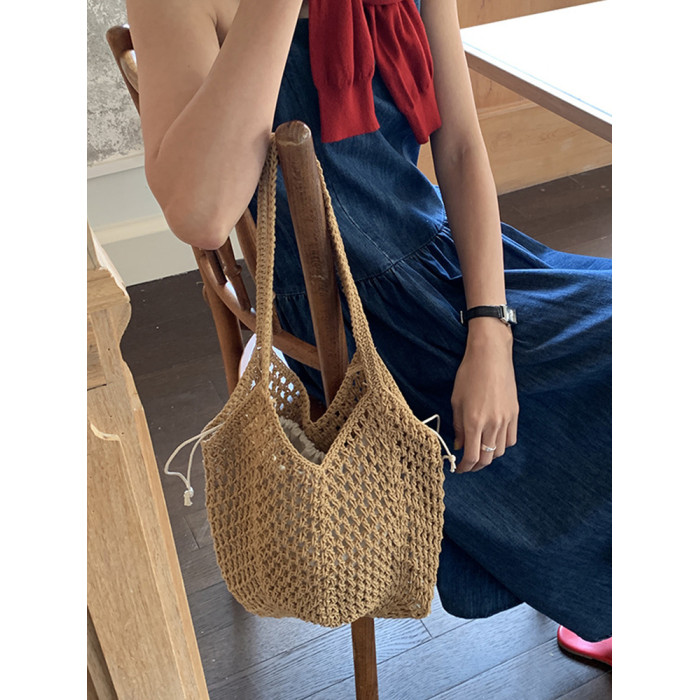 A CA4LA編織袋休閒大容量鏤空慵懶風單肩包出遊沙灘包度假女包包