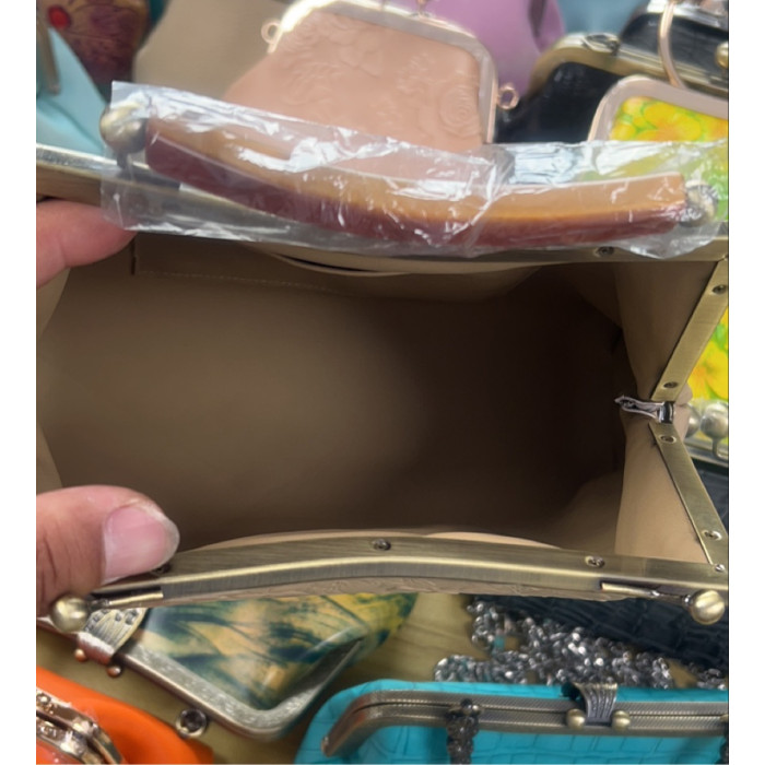 雲膠樹脂手提包斜背單肩女包真牛皮時尚簡約復古風口金包植柔壓花