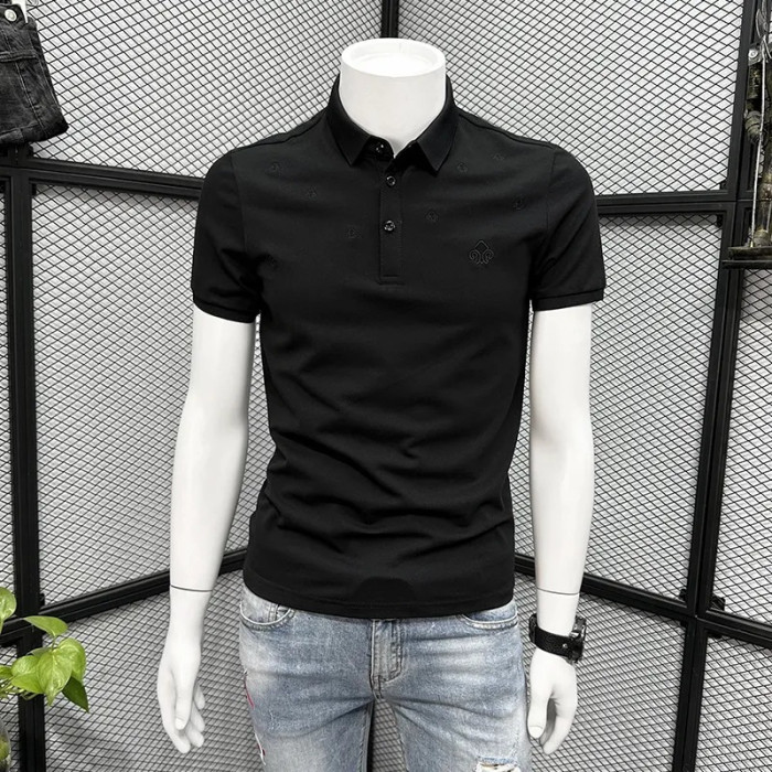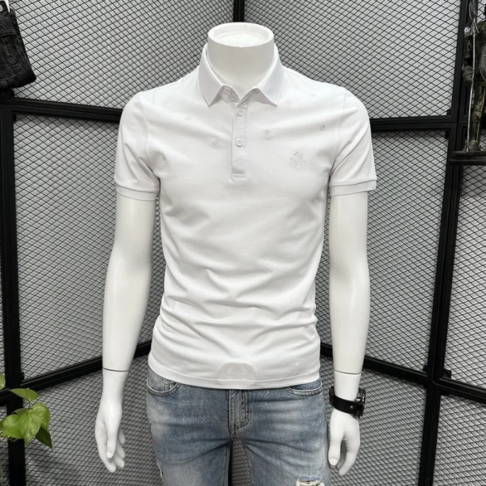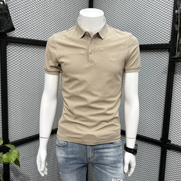 杏色刺綉POLO衫男短袖t恤夏季2023新款休閒半袖高級潮牌修身體恤