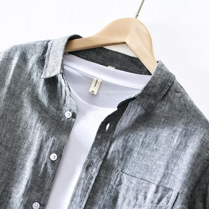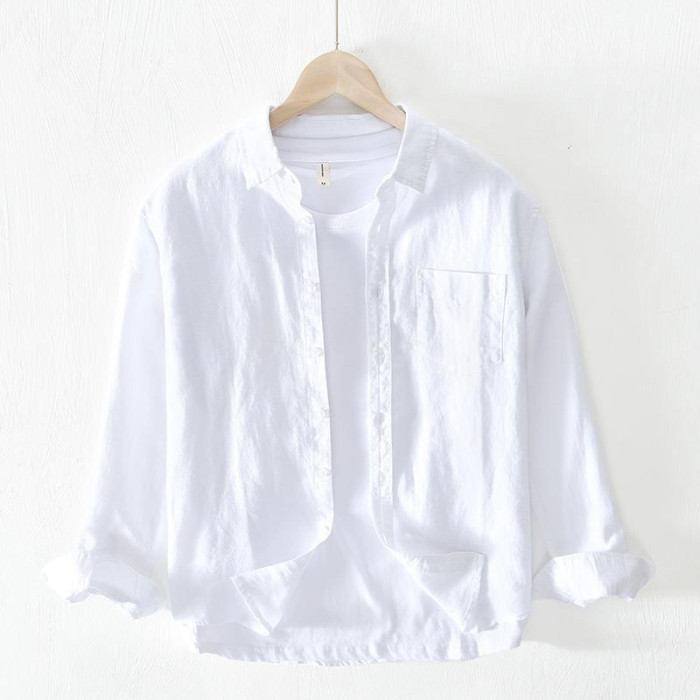 721 729 日系簡約純色寸衣男士 休閒棉麻寬松長袖襯衫男