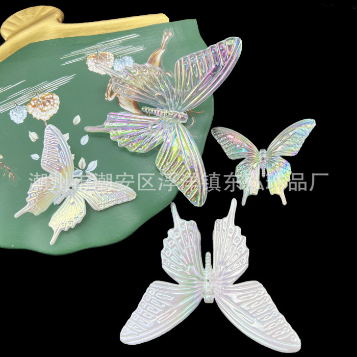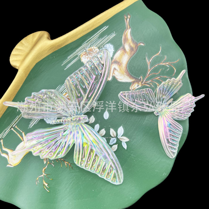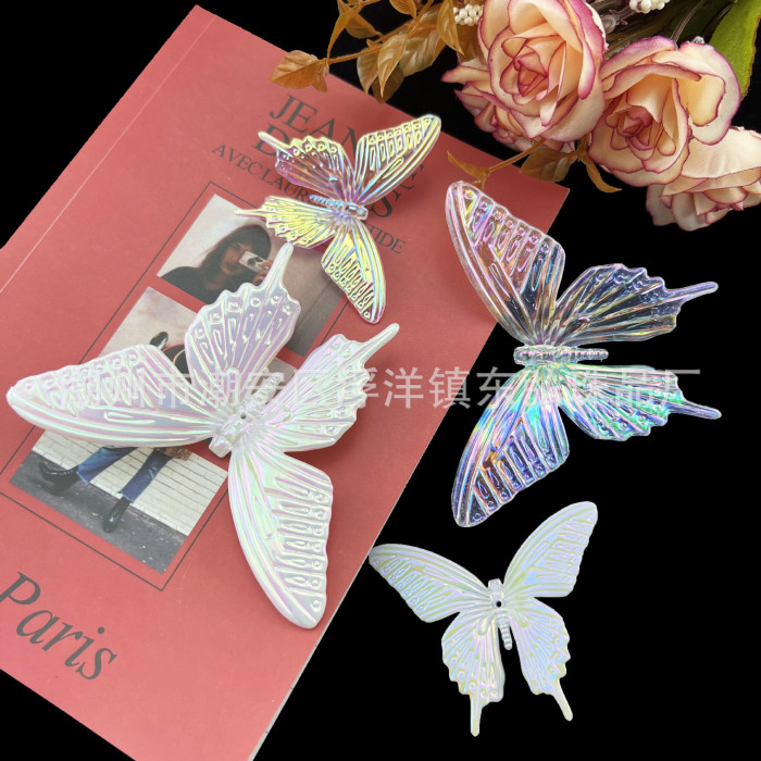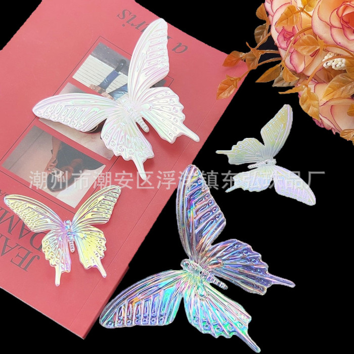 幻彩亞克力透明蝴蝶 鐳射diy手機殼網紅髮飾劉海夾配飾極光大蝴蝶