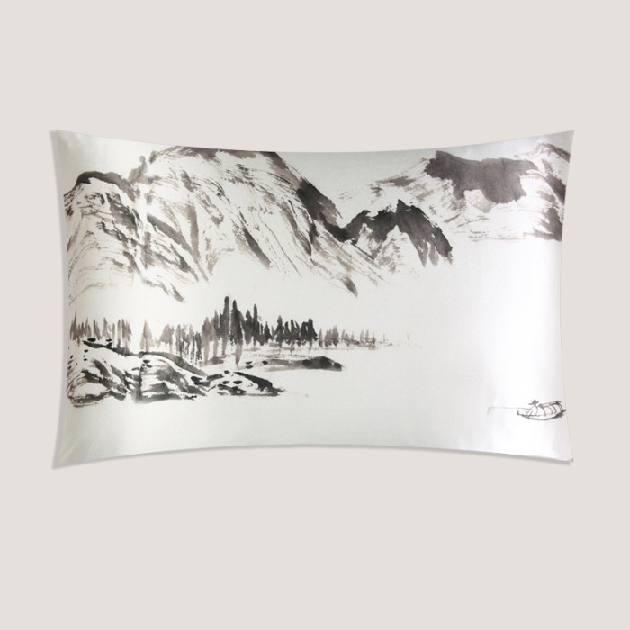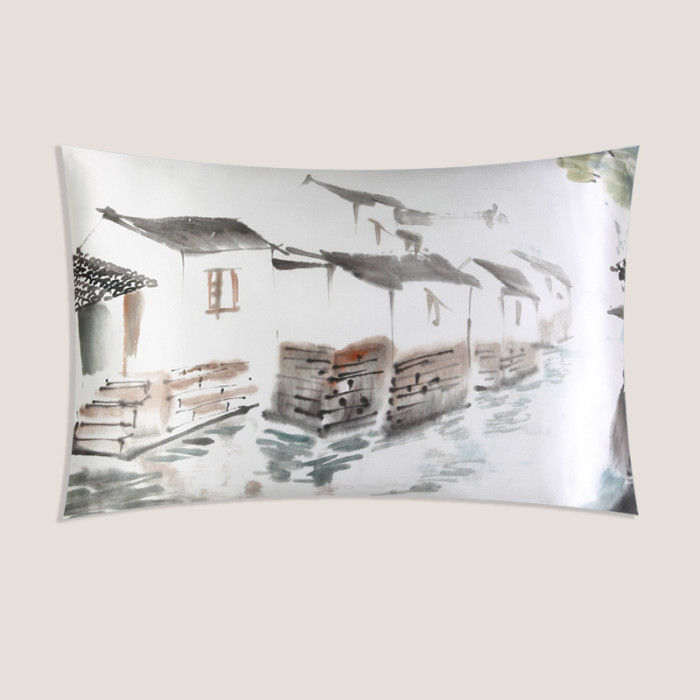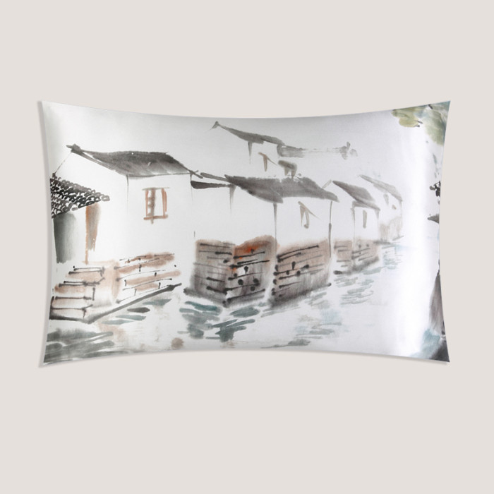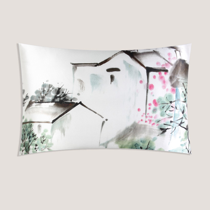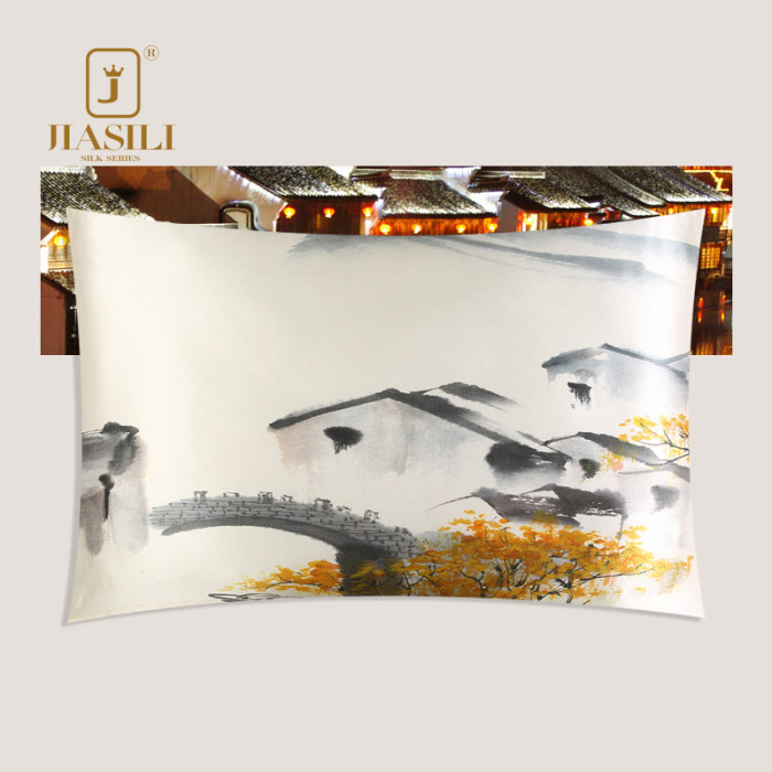 嘉絲麗水墨江南系列真絲枕巾100桑蠶絲綢枕巾枕套加厚印花新款