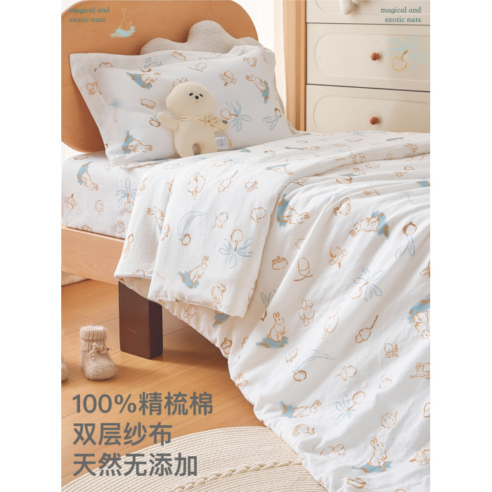 桑小圓兒童純棉紗布被套幼兒園被罩嬰兒寶寶床品單人被套ins風
