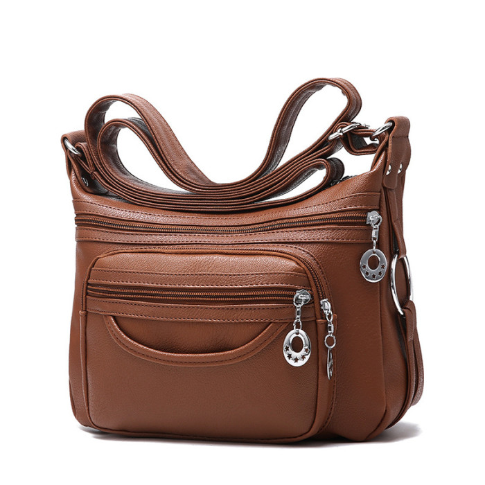千年紅穀香包軟皮單肩包2024新款中年媽媽包休閒斜背中老年婦女包