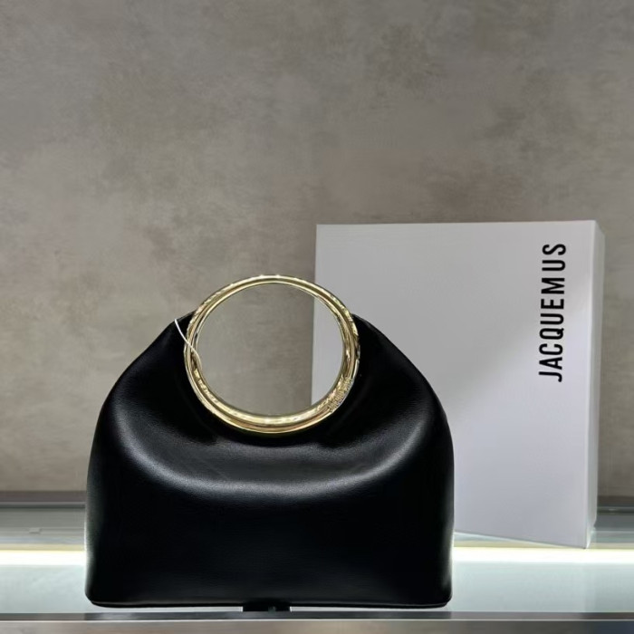法國小衆jacquemus the 圓環手柄手提包歐美時尚女包宴會包羊皮