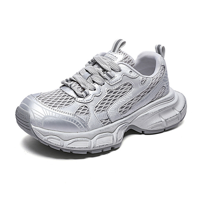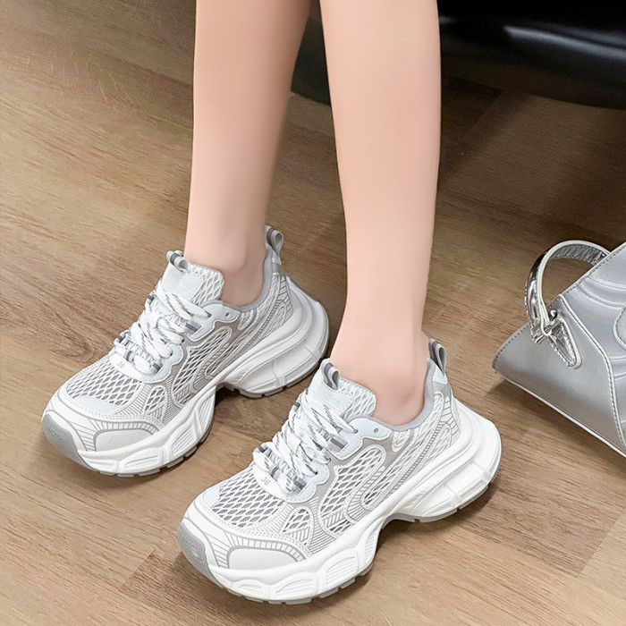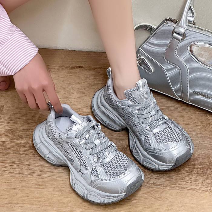 巴黎老爹鞋女2025春夏新款百搭大頭鞋厚底增高網面透氣休閒運動鞋