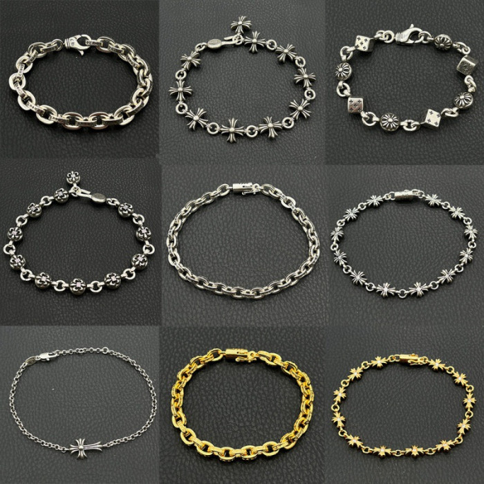 ch潮牌克羅伈s925復古寶劍字母十字架花骰子童軍花球滿花手鏈飾品
