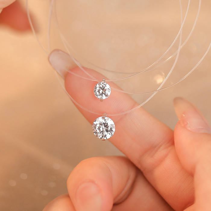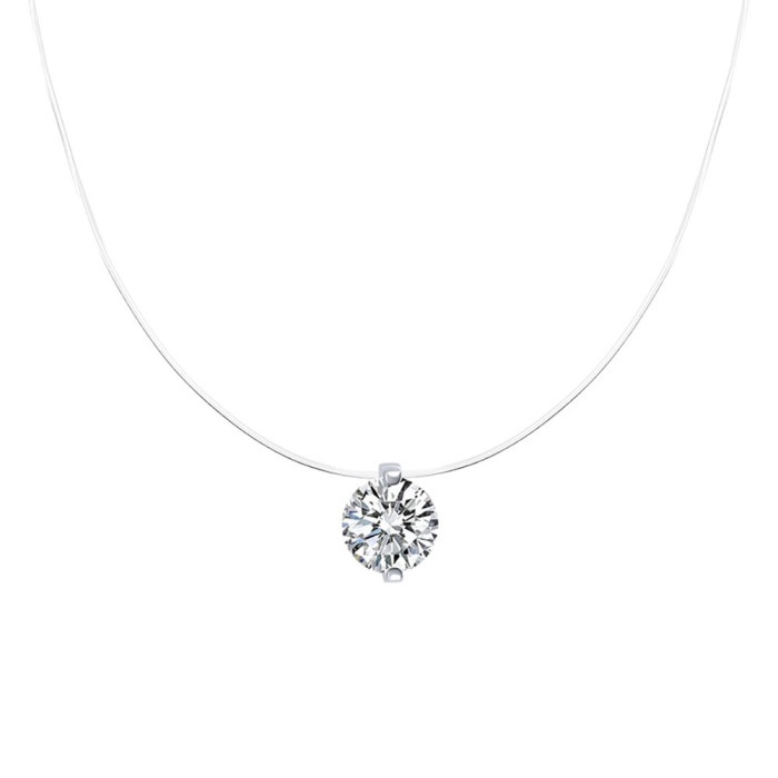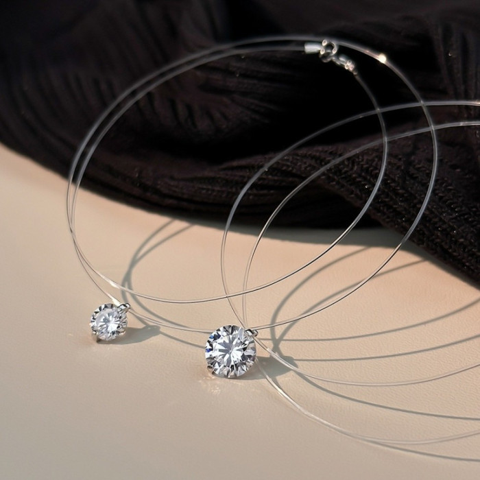 S925純銀人魚之淚項鍊女式爆款莫桑鑽閃鑽吊墜隱形高級感魚線頸鏈