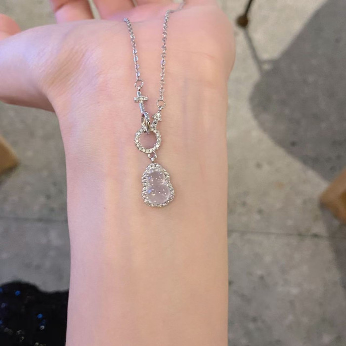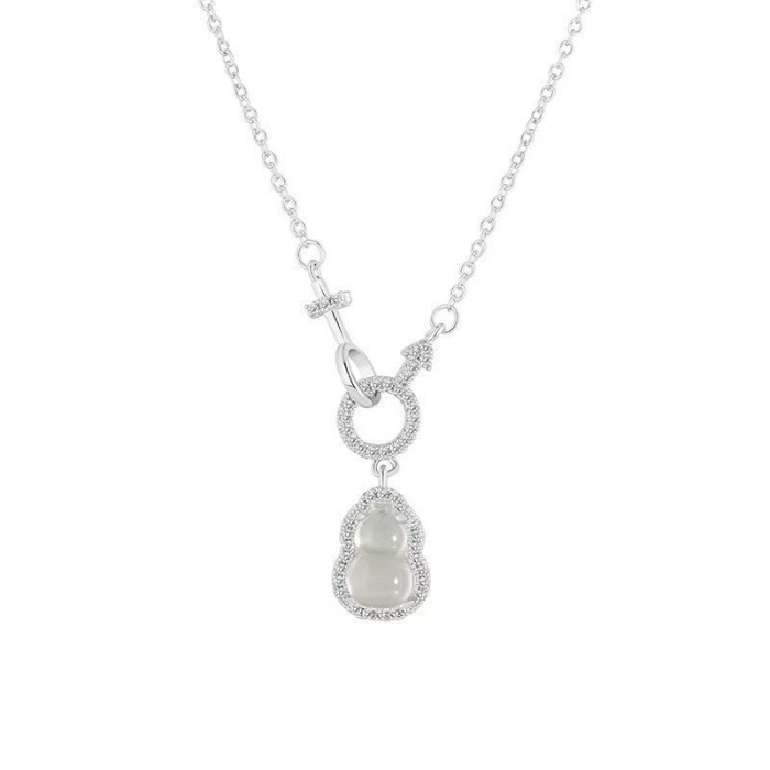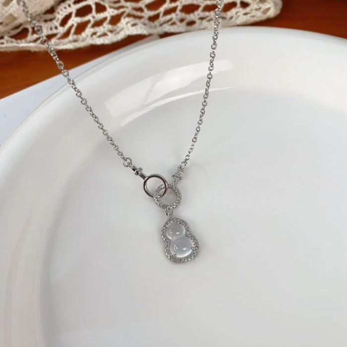 瑜美S999新款新中式葫蘆項鍊復古小衆高級環環相釦鋯石玉髓鎖骨鍊