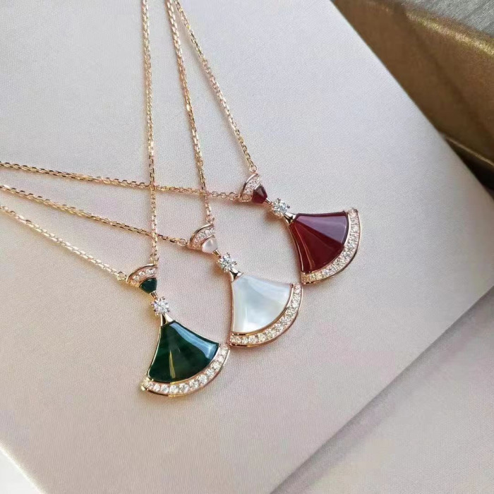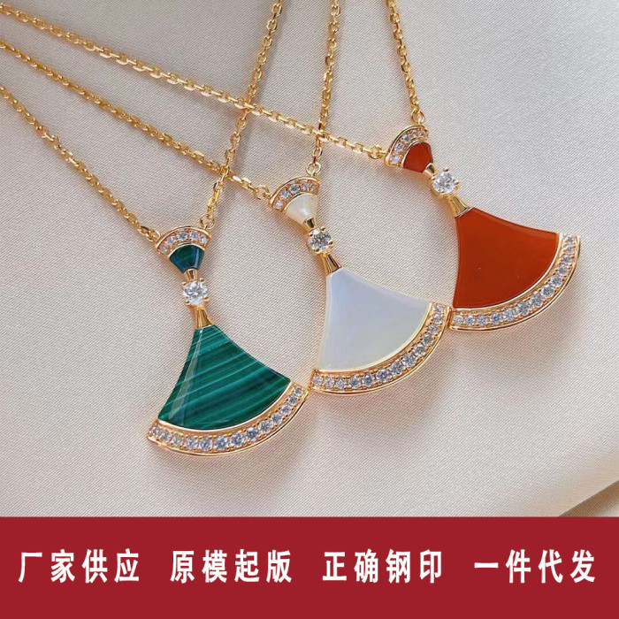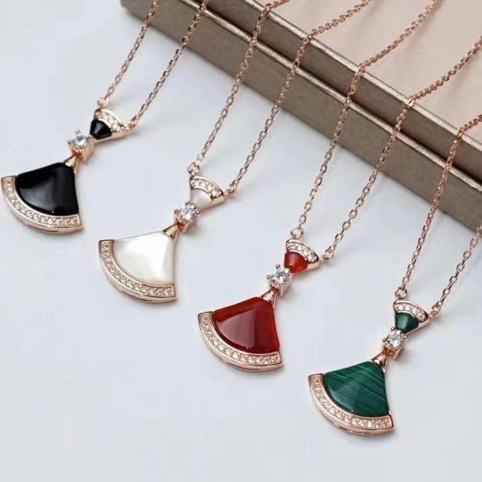 寶家V金高版本小裙子項鍊女白貝母扇形18k玫瑰金鎖骨鍊