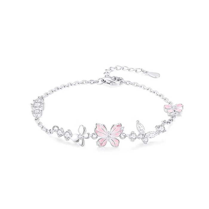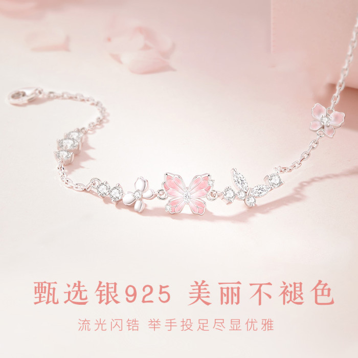流光蝶夢S925銀夜光蝴蝶手鏈女生輕奢粉色系浪漫螢光手環節日禮物