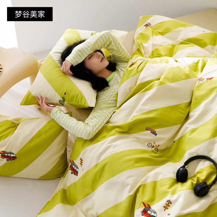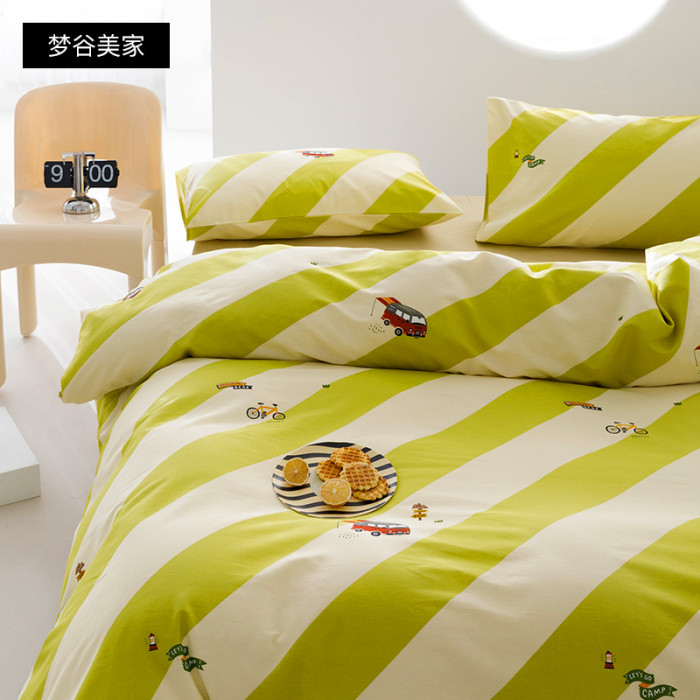 少女心綠色純棉被套單件簡約全棉床上三四件套雙人被罩1.8m床笠款