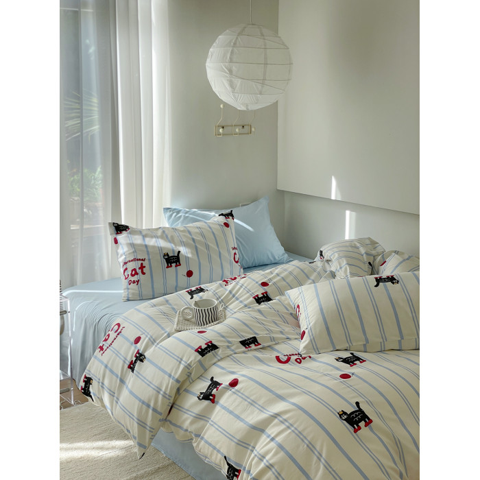 卡通簡約清新純棉被套單件160x210單雙人150x210全棉被罩150x215
