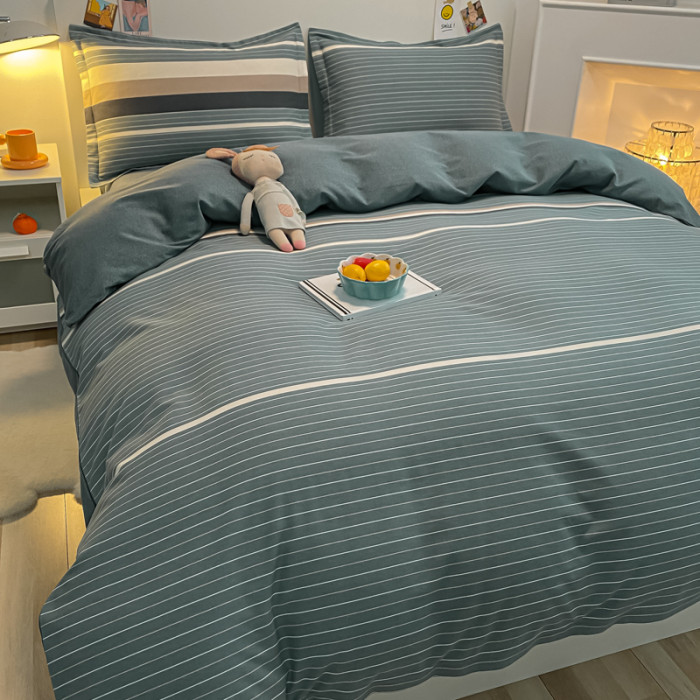 純棉條紋被套單件全棉磨毛150x200被罩200x230雙人1.8x2.0m四件套