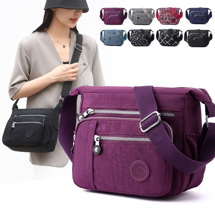 中老年媽媽包 尼龍大容量斜背單肩包 多隔層休閒斜後背包
