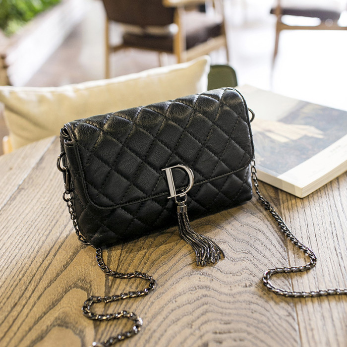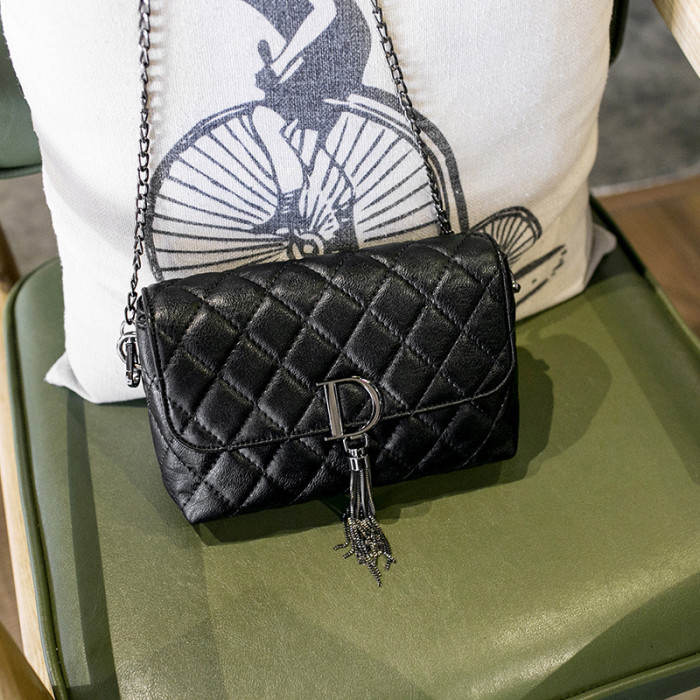 相印皮具夏天小包包女2024新款韓版百搭超火小香風菱格鏈條斜後背包