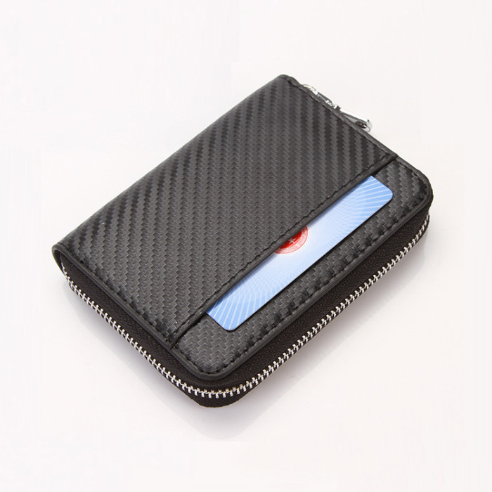 日本新款男士錢包 碳纖維短款拉鍊零錢包