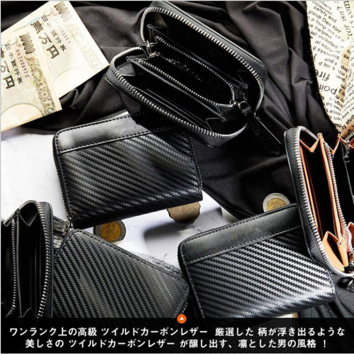 新款 碳纖維短款男士零錢包日本拼接拉鍊錢包