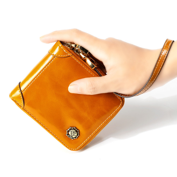 頭層真皮rfid防盜刷女士錢包 短款油蠟皮拉鍊零錢包牛皮復古錢夾