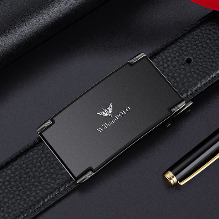 英皇保羅皮帶男士真皮平滑釦板釦打孔腰帶男士商務皮帶男士高級感