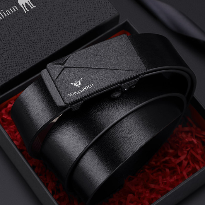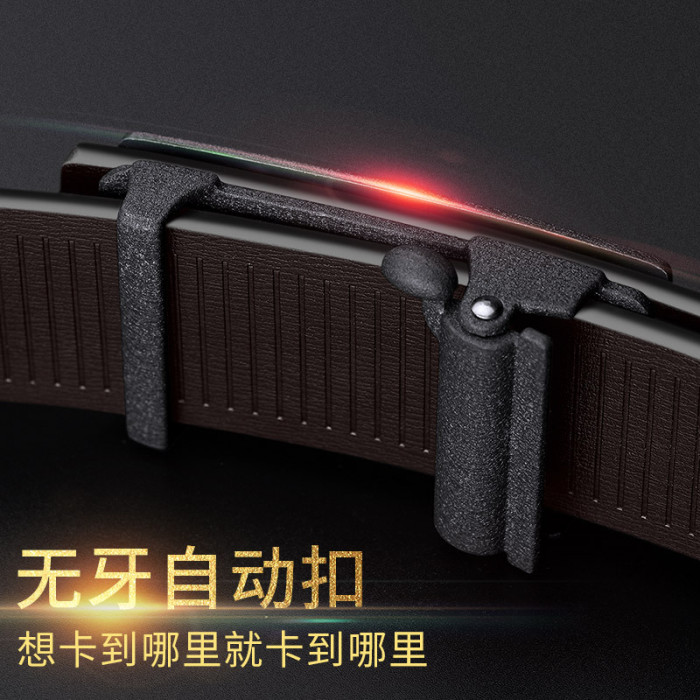 英皇保羅皮帶男士高級感商務簡約合金男款腰帶真皮皮帶男自動釦潮
