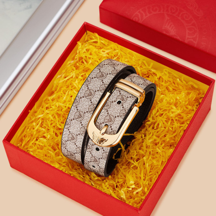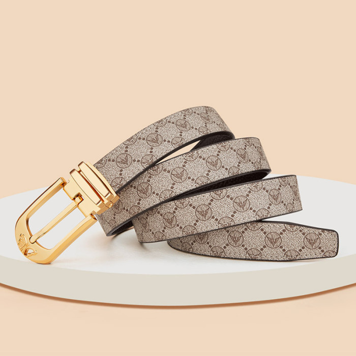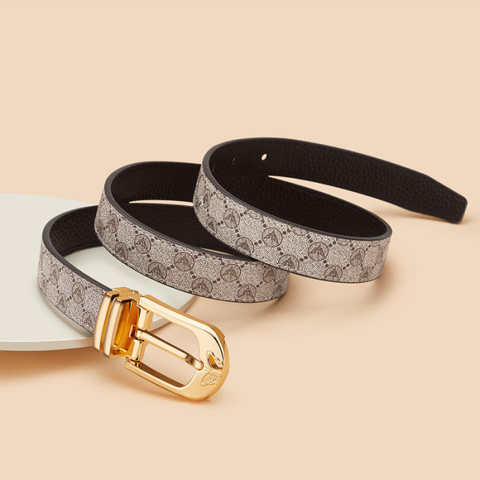 英皇保羅女士皮帶新款時尚簡約牛皮腰帶女士裝飾配牛仔褲皮帶