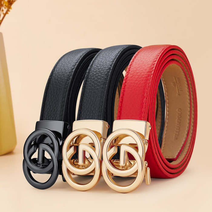 英皇保羅真皮皮帶女士純牛皮西裝裙牛仔褲腰帶女時尚女士皮帶