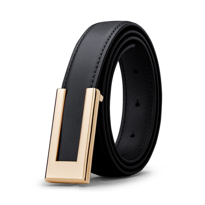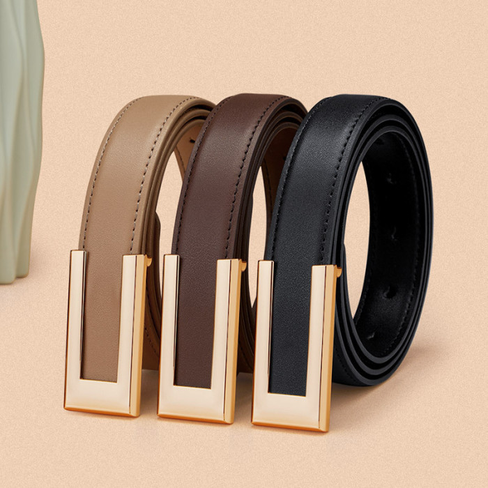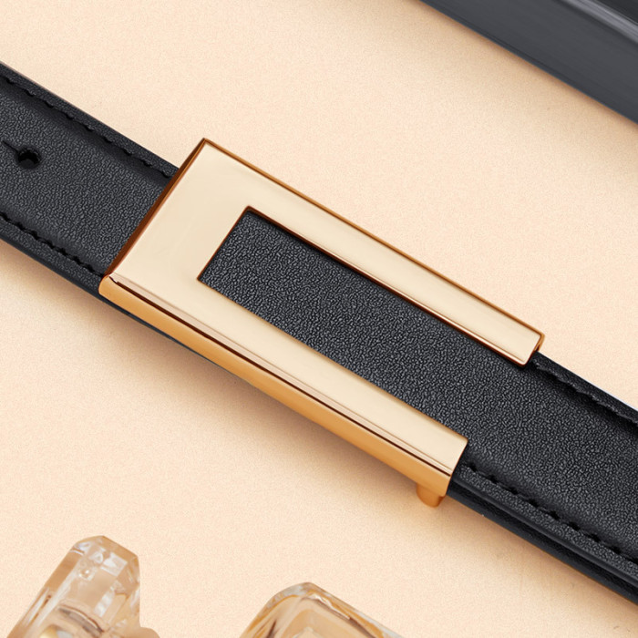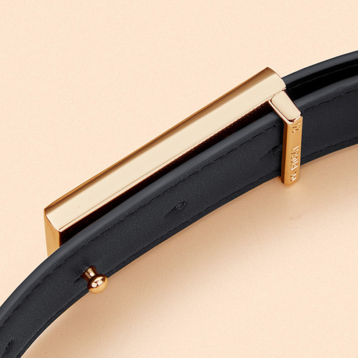 英皇保羅皮帶女士真皮簡約百搭平滑釦細腰帶裝飾裙子韓版收腰褲帶