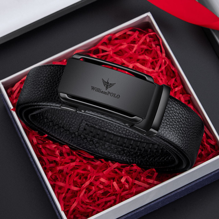 英皇保羅皮帶男士真皮高級自動釦腰帶男士牛皮商務皮帶男士高級感