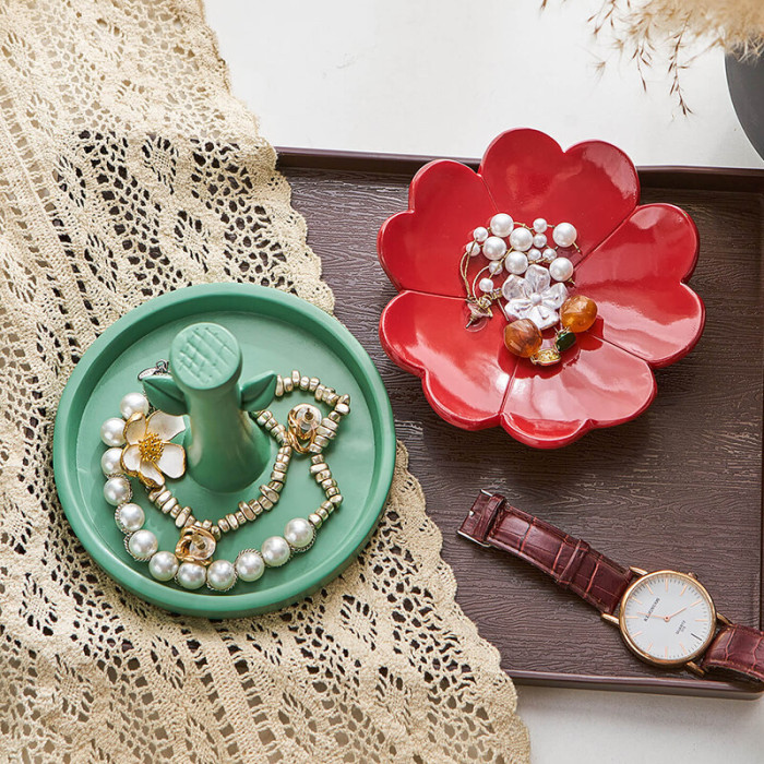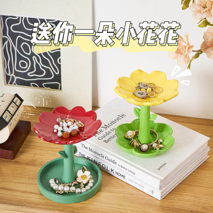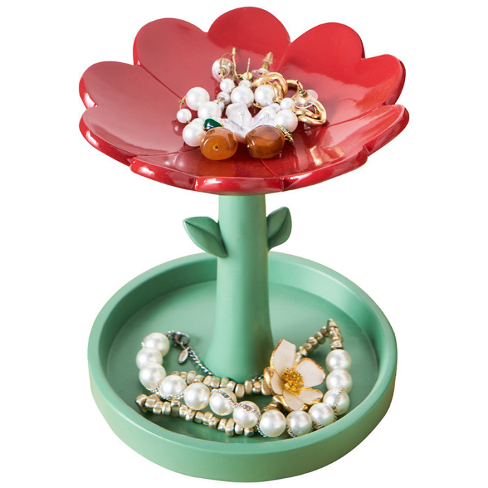創意高顔值趣味伴手禮物客廳桌面鑰匙架樹脂花朵首飾盤收納擺件