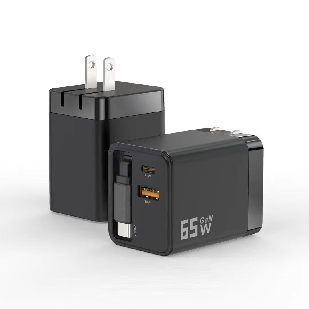 PD65W伸縮線快充充電器氮化鎵全協議顯標快充A+C雙口多功能充