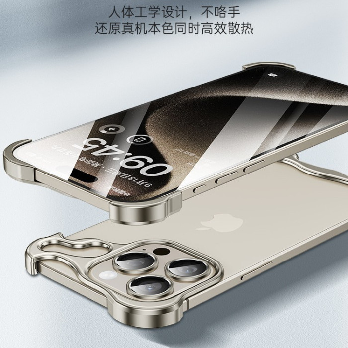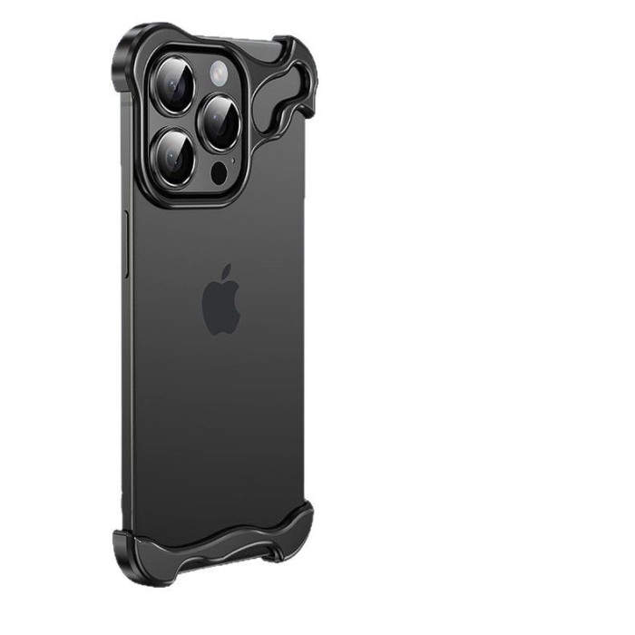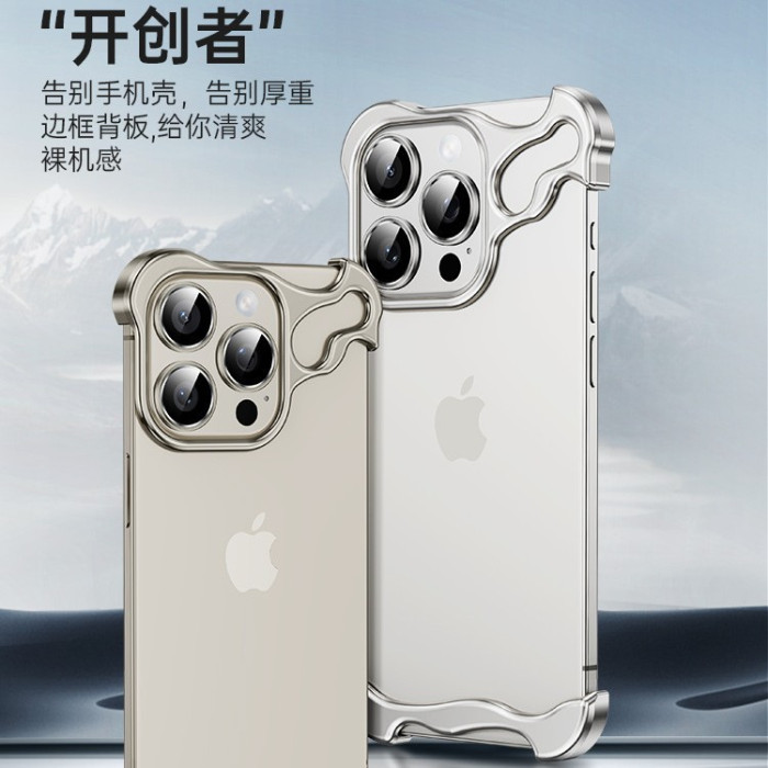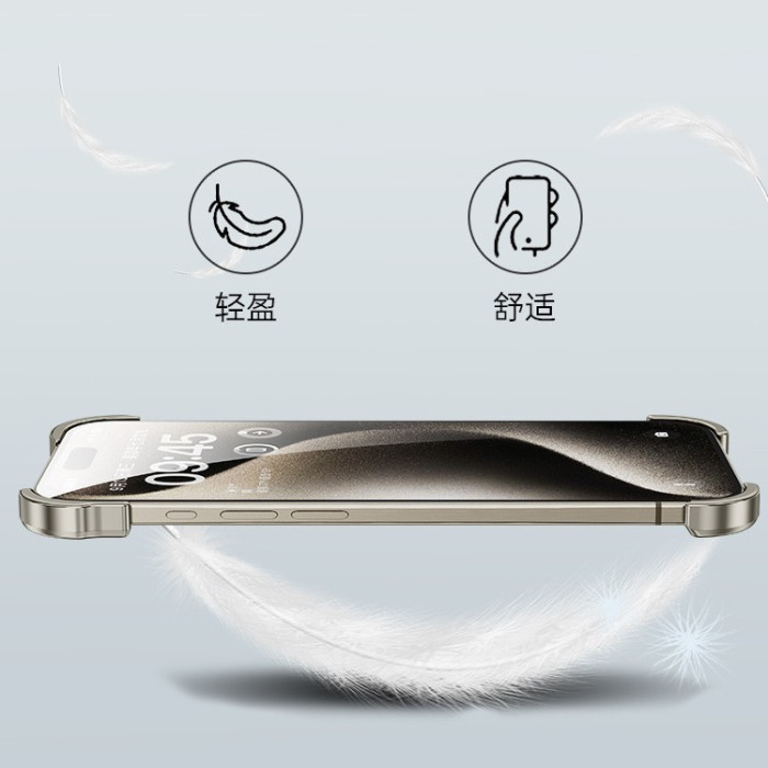 異形裸機無邊框15promax金屬四角墊適用蘋果16pro裸感手機殼