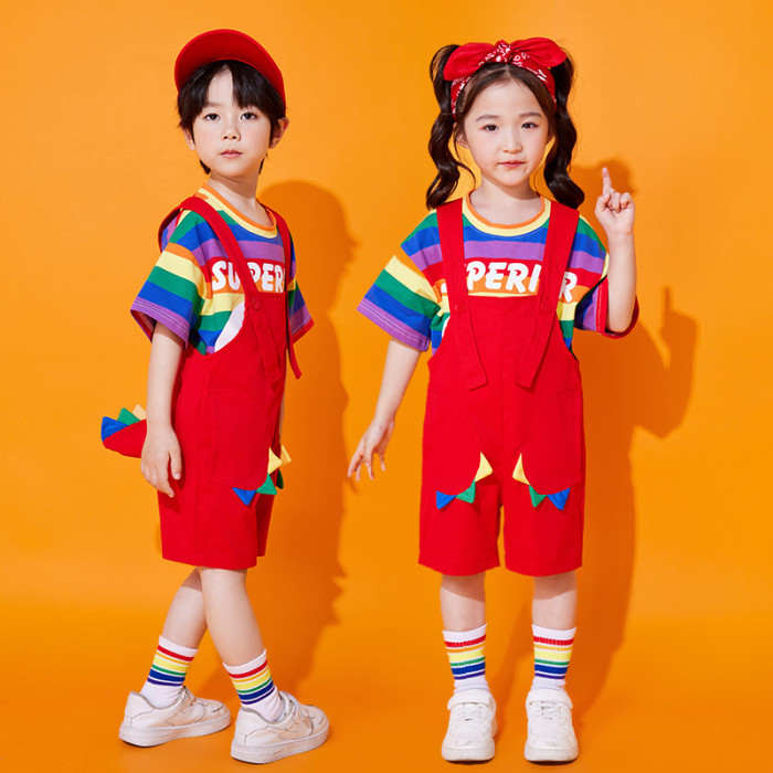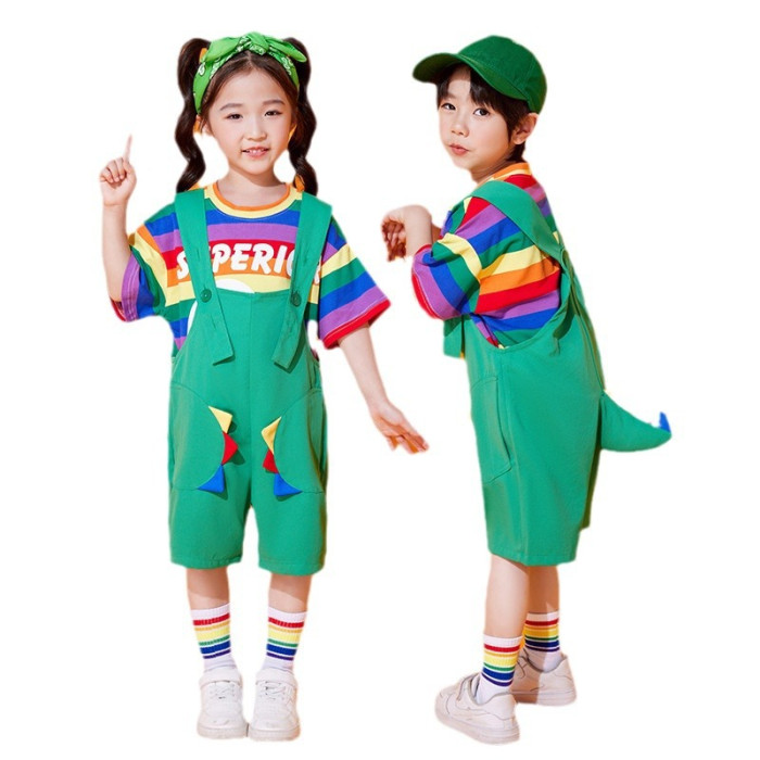 幼兒園六一演出服兒童舞蹈可愛恐龍背帶褲小學生團體動物表演服夏