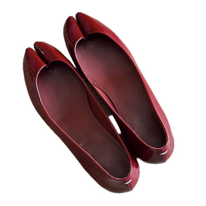 聯名款紅色豬蹄分趾單鞋女2025新款ins小衆馬蹄芭蕾舞平底小皮鞋