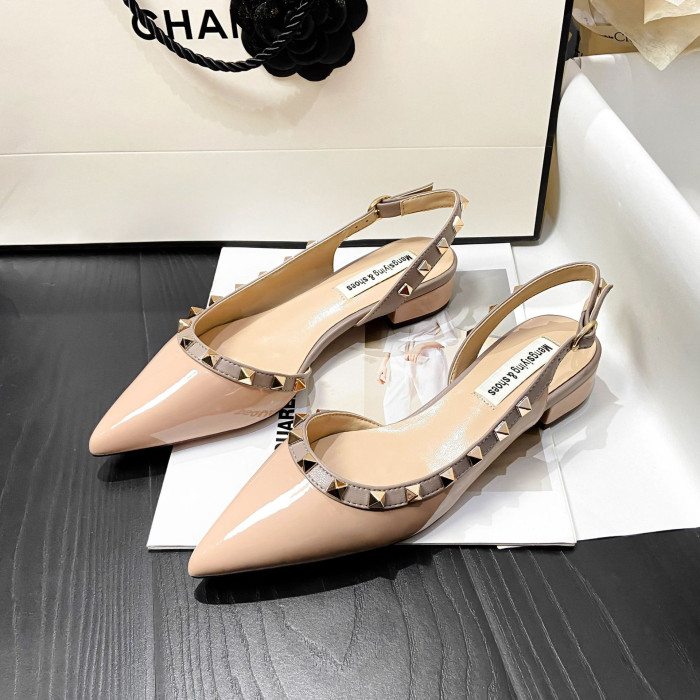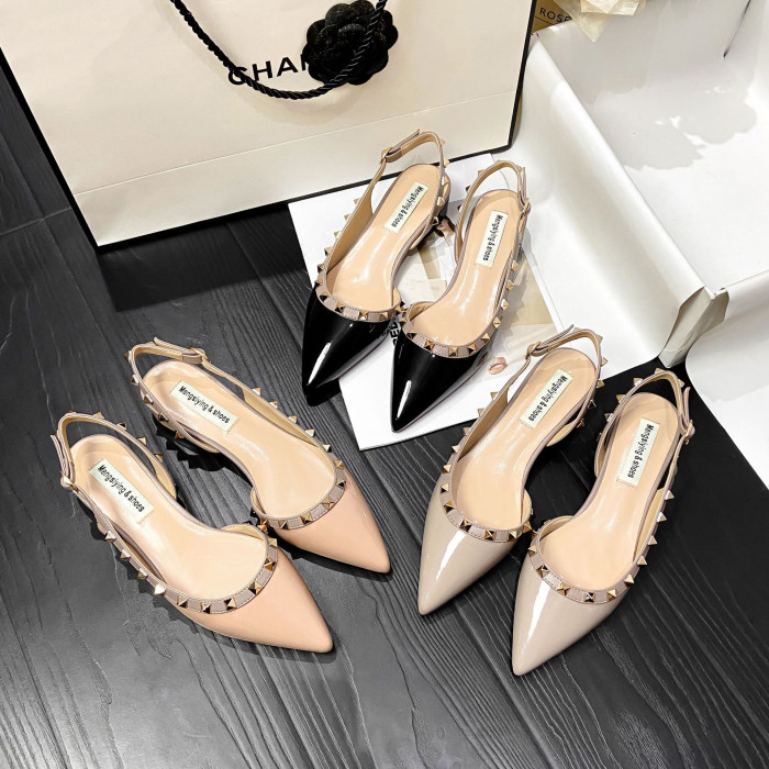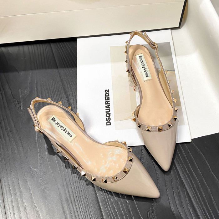 法式鉚釘包頭涼鞋女2025夏季新款尖頭淺口輕奢百搭軟底低跟單鞋女