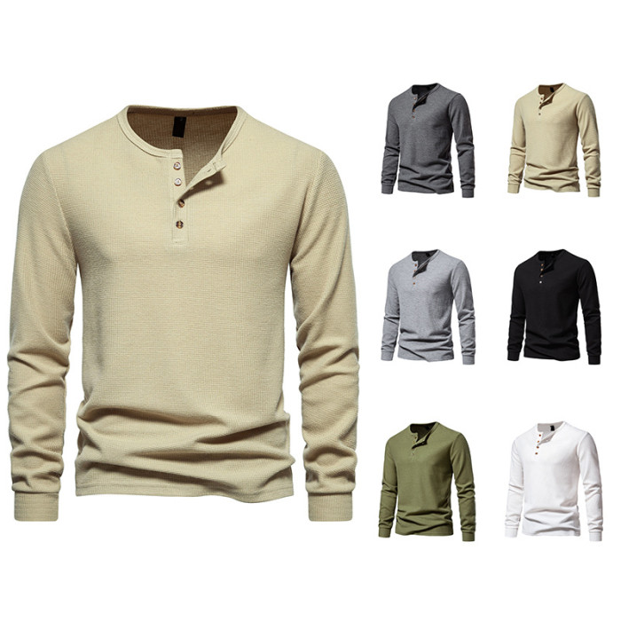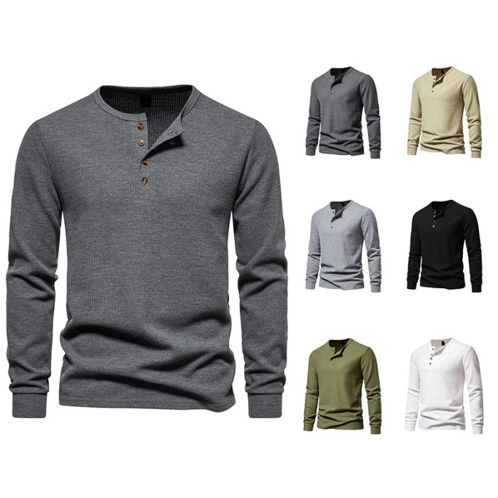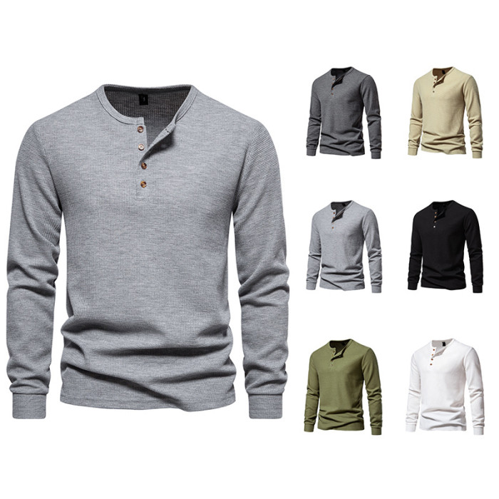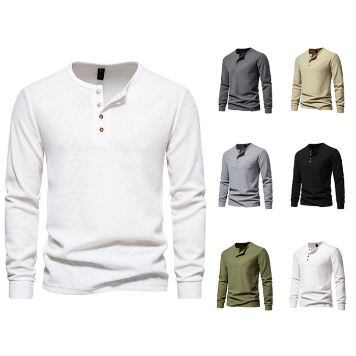 新款男士四粒釦華夫格亨利T恤男士長袖T恤B112