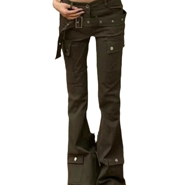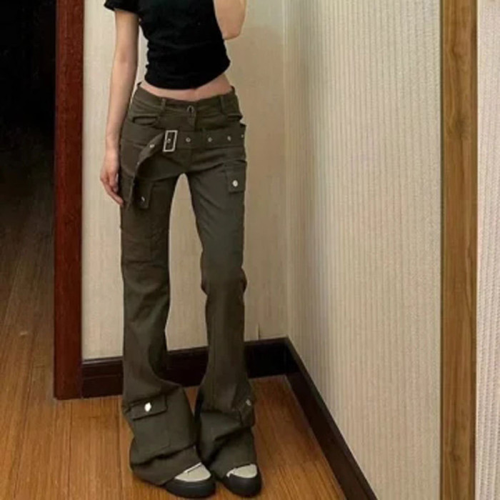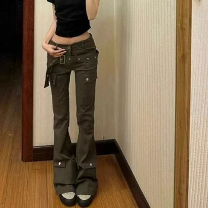 2023美式高街復古低腰微喇叭牛仔褲女夏季設計感小衆休閒工裝褲子